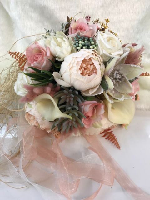 Zaman zaman nikah ve düğün farklı yer ve günlerde olabiliyor ya da iki ayrı şehirde iki ayrı düğün! Sevdiklerinizin bu mutlu gününüzde yanınızda olmaları için farklı seçenekleriniz olabilir. Ya da “çiçeğimin birini bekar arkadaşlarıma atmak istiyorum ama diğerini de evimde hatıra olarak saklayacağım” diyebilirsiniz. Size usta ellerde tasarlanan ve canlı gibi görünen yapay çiçek buketlerimizi öneriyoruz. Üstelik kır düğünleri için buketinizle kombin, saçlarınızı süsleyecek saç bantları ve taçlarımız da mevcut.